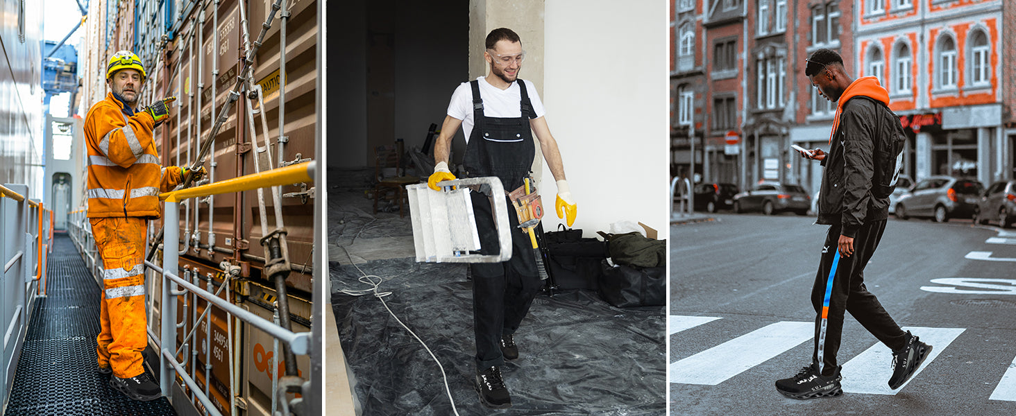 I am a Paint Porter and l am responsible for delivering paint. As a result, l am in constant contact with lifts and machinery, including on construction sites. I also carry many 5-gallon paint buckets throughout the day that can fall or hit you in the foot. They all weigh over 60 pounds, if not over 100 pounds. l work 5 days a week from 6am until 3-5pm. Before l wore boots to protect my feet, but in the summer l can wear shorts, so l'm glad to have these steel-toed shoes to wear with my shorts instead of boots. They are light weight and comfortable enough to wear in the summer without feeling stuffy Well worth the purchase!